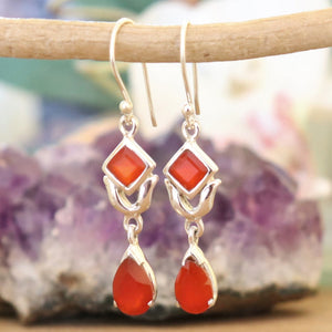 Boucles d'oreilles longues en argent cornaline et pierre de lune