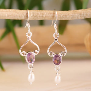 Boucles d'oreilles longues en argent avec améthyste et perle